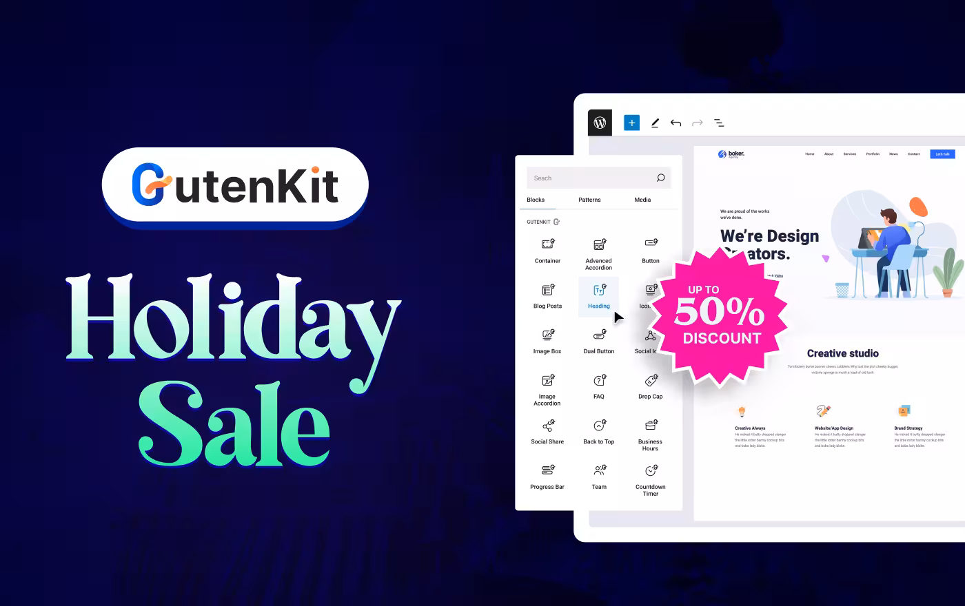 - GutenKit: Up to 50% discount running on GutenKit, an advanced block plugin.