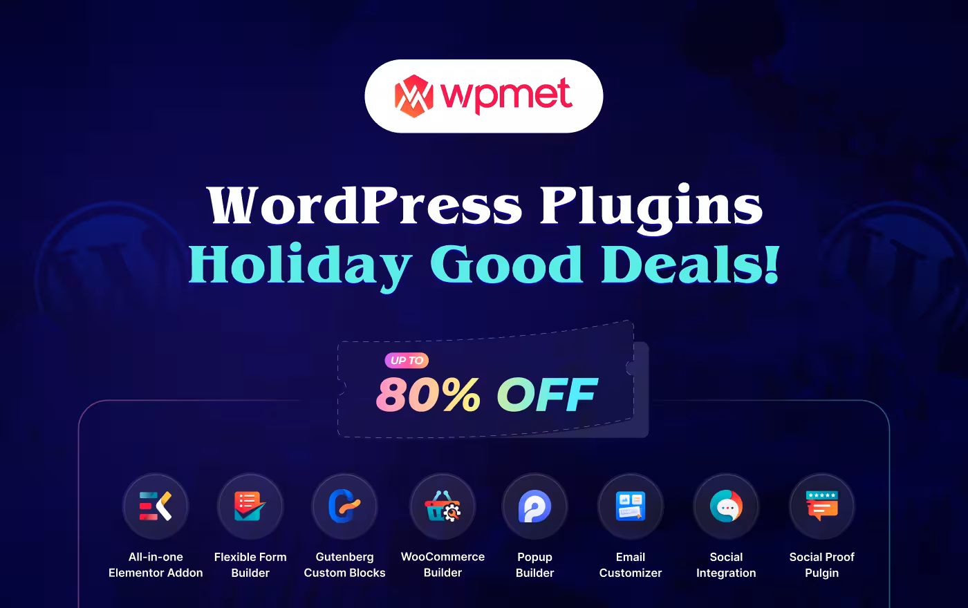 Indulge in a spectacular up to 80% discount this holiday season on all premium plugins from Wpmet. Seize the finest deal of the year!