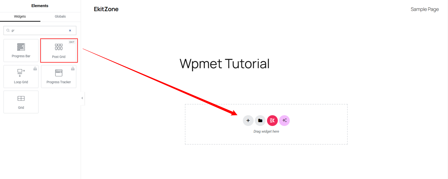 Once you’re in the editor dashboard, drag and drop the ElementsKit Blog Post Grid widget to start building your grid layout from scratch.