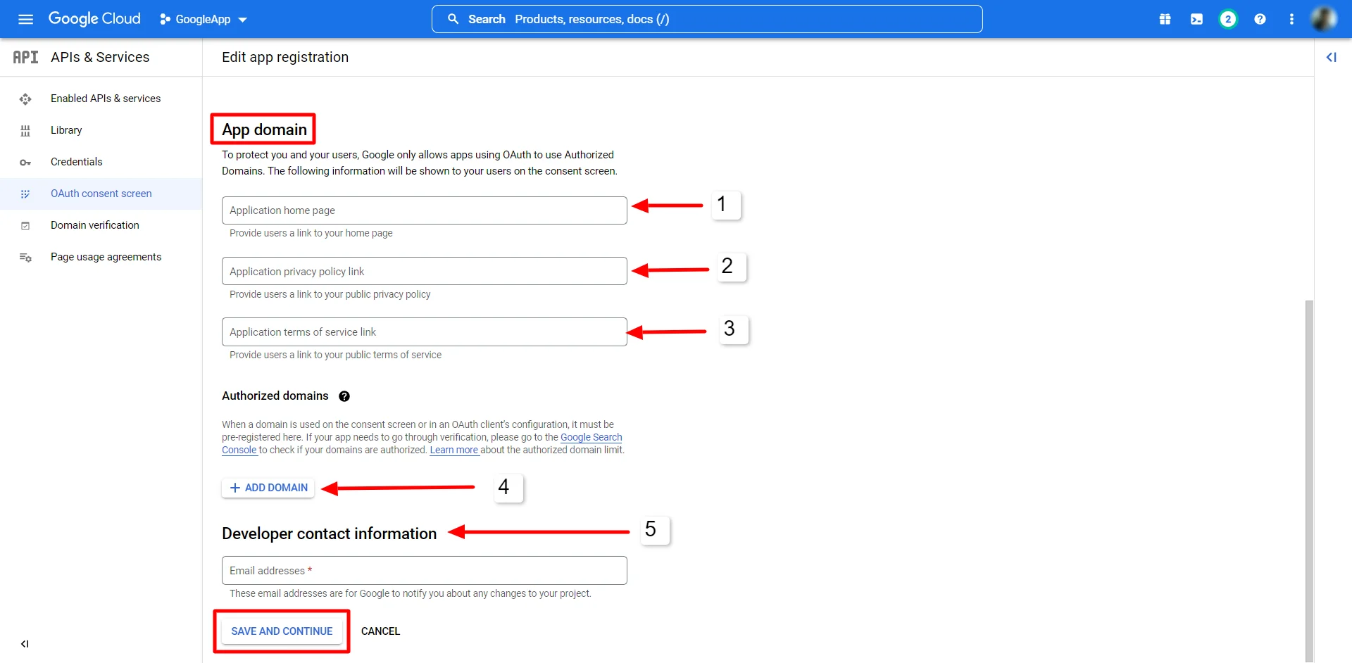 Now, fill in the rest of the details like, Autoriserede domæner, Application Homepage link, and Fortrolighedspolitik link. Don’t worry if you don’t have a privacy policy yet. You can easily generate one online.