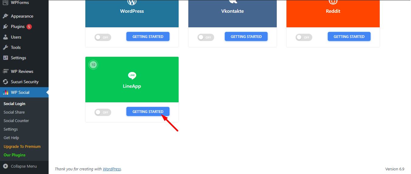 Now it’s time to access the WP Social plugin from your WordPress dashboard. Here you can collect the Callback URL required for integrating the LINE App. To do this: