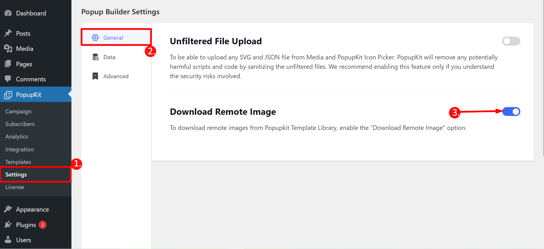 - Go to the Settings of PopupKit from the dashboard