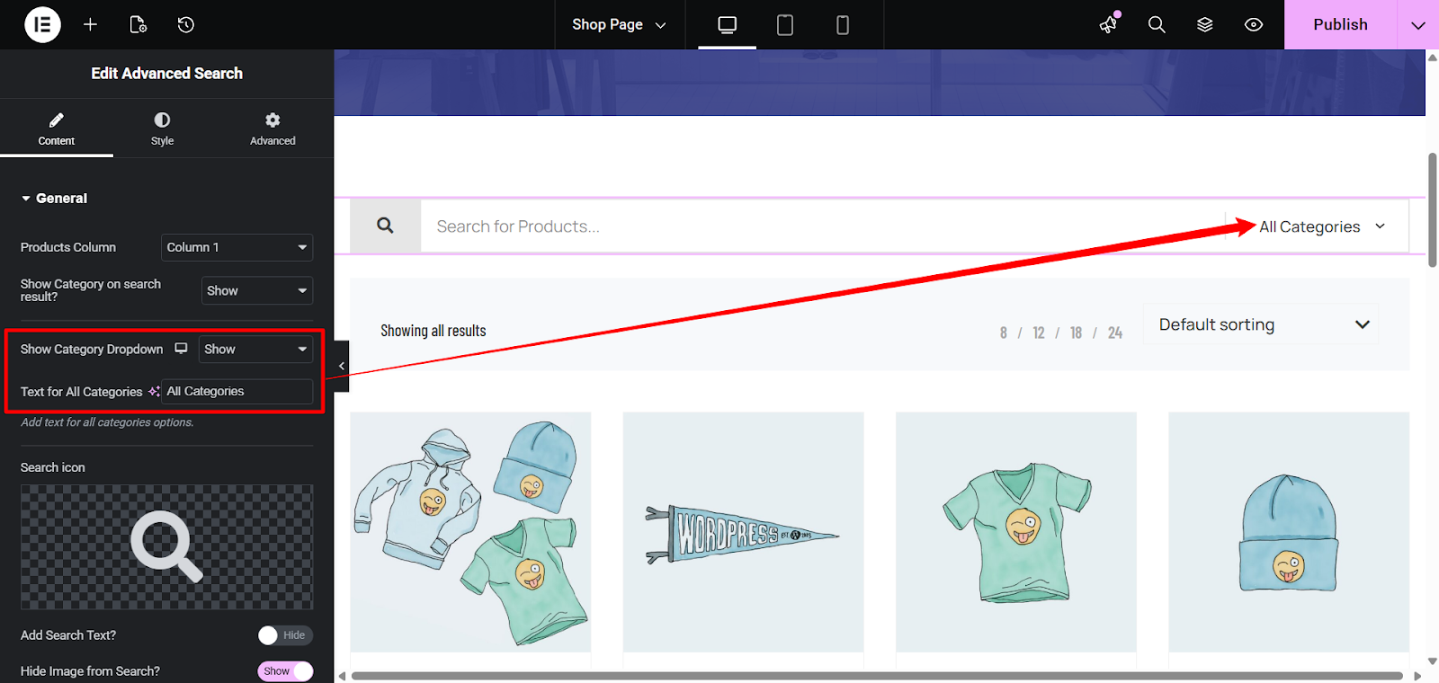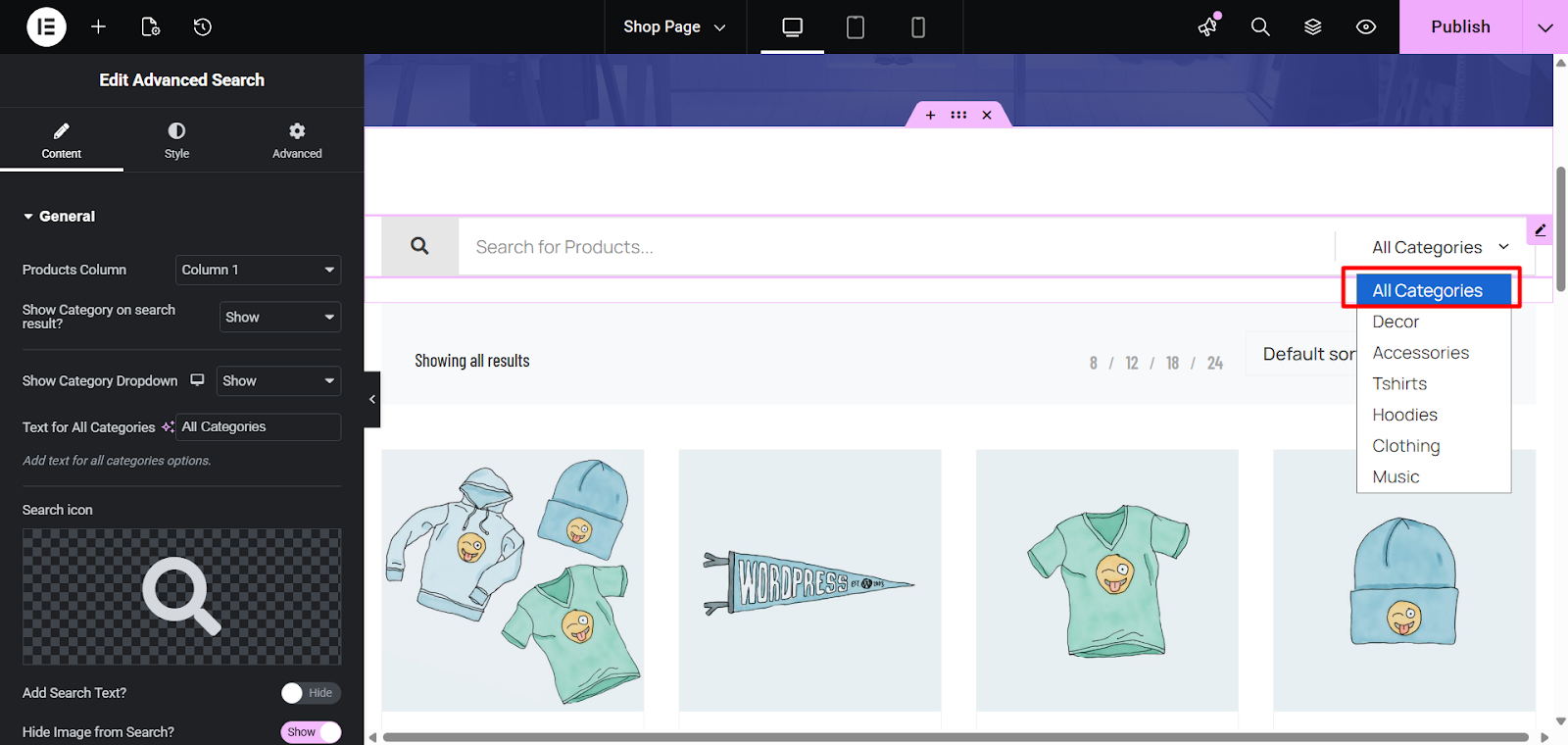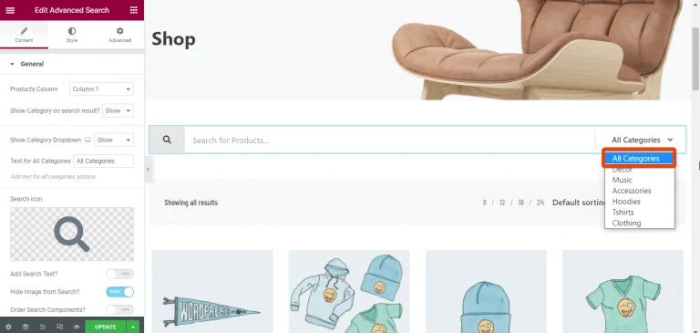 For example, if someone selects “All Categories” and searches for a product, they’ll see results from every category in your store.