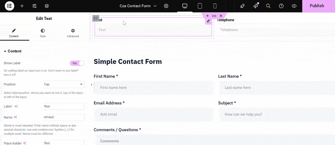 - MetForm has an intended widget for Phone Number, and you can use the text widget for the second field. Simply drag the widgets to the intended container.