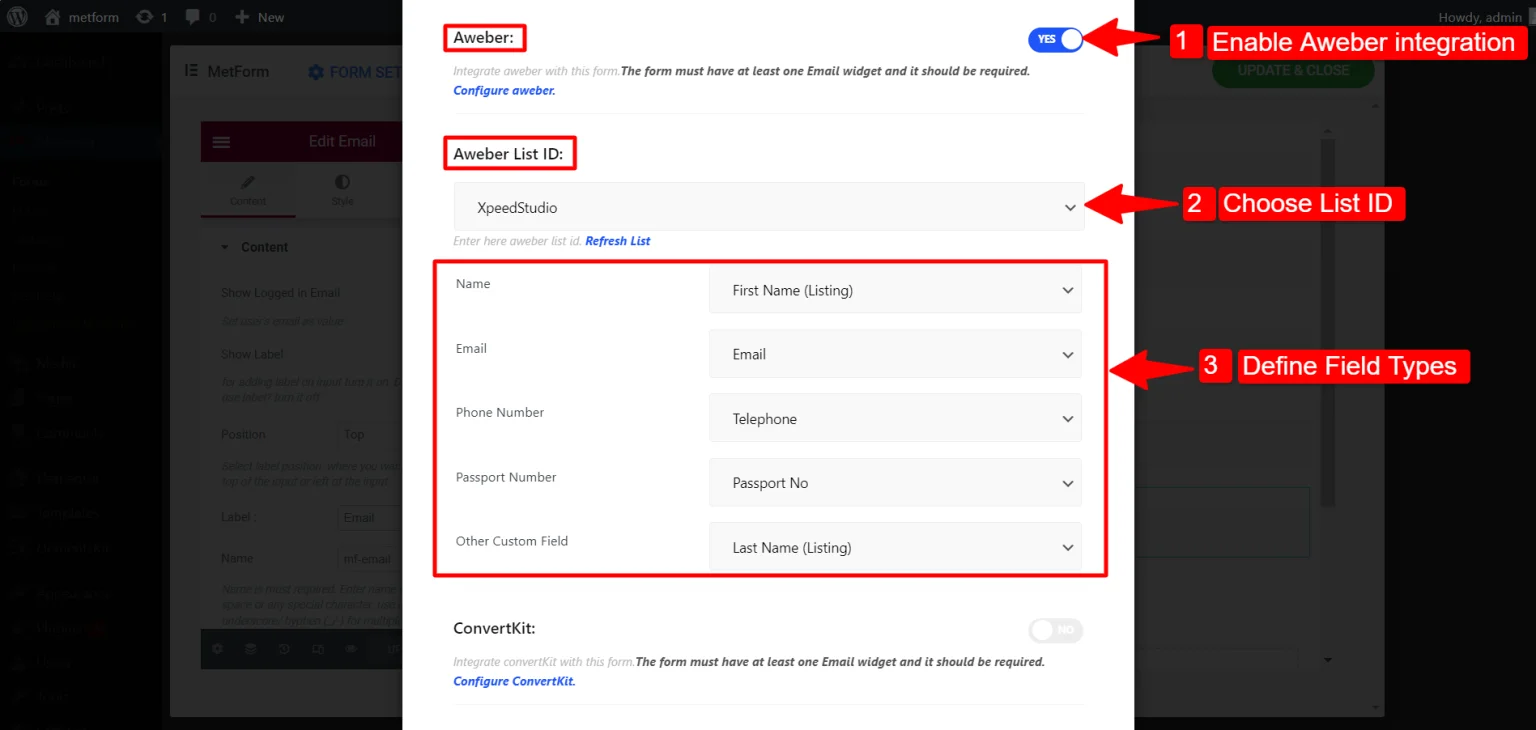 - Integrating AWeber with Elementor form