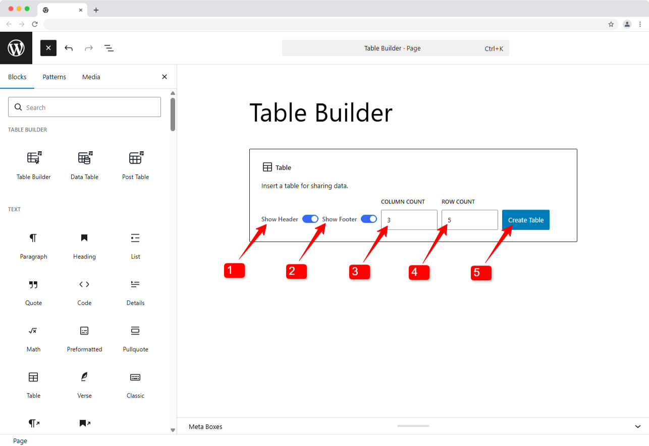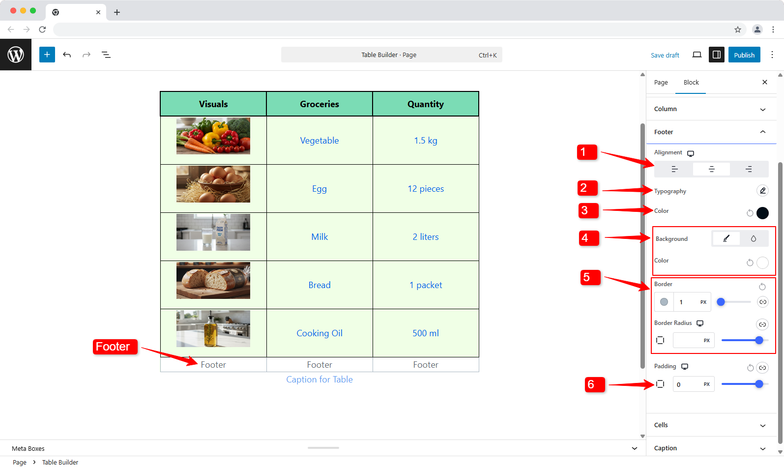 Step 3: Configure WordPress Table Settings in Gutenberg #