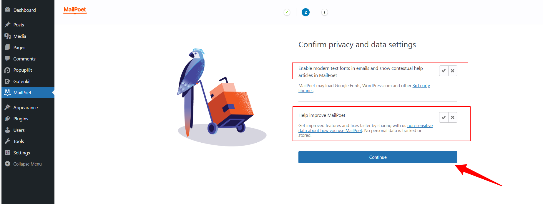 Once MailPoet is active, you need to enable it within the PopupKit global settings: