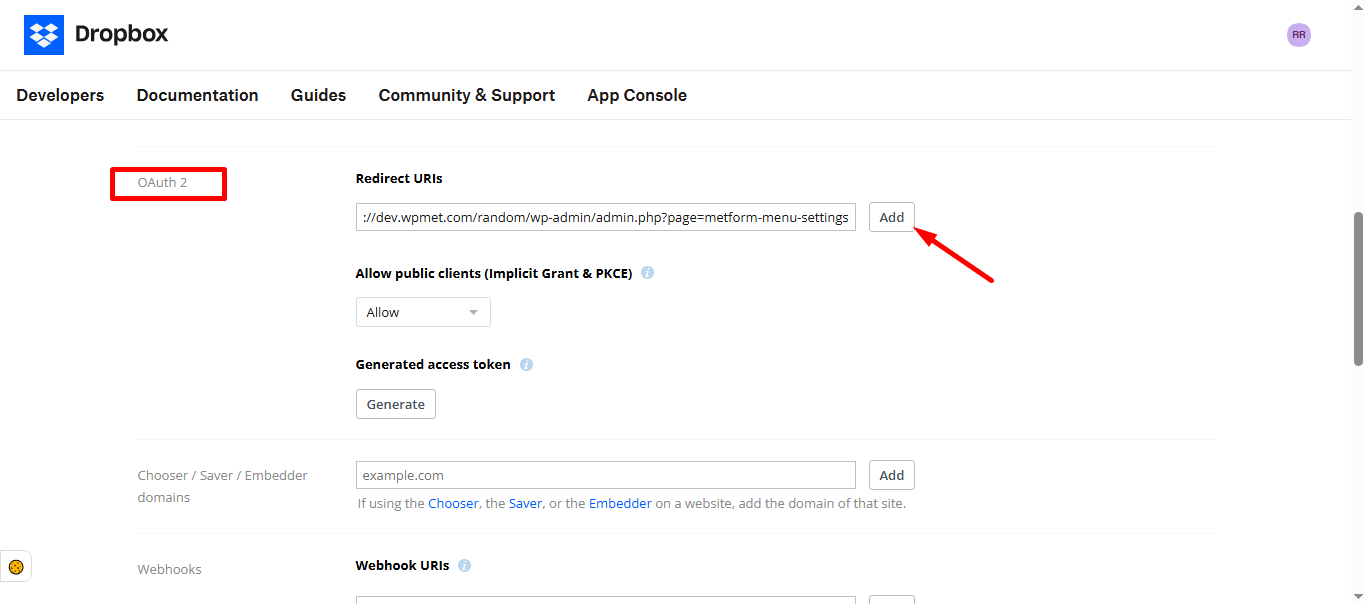 Now, go back to MetForm’s Settings and copy the valid OAuth redirect URIs.