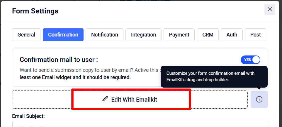 Sprawdź to EmailKit’s documentation for details: Customize Form Confirmation Email.