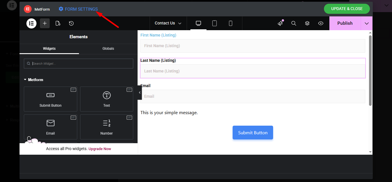 Jeśli nie chcesz tworzyć strony dla swojego formularza kontaktowego Elementor, a raczej osadzić formularz na dowolnej stronie, MetForm również Ci to umożliwia.
