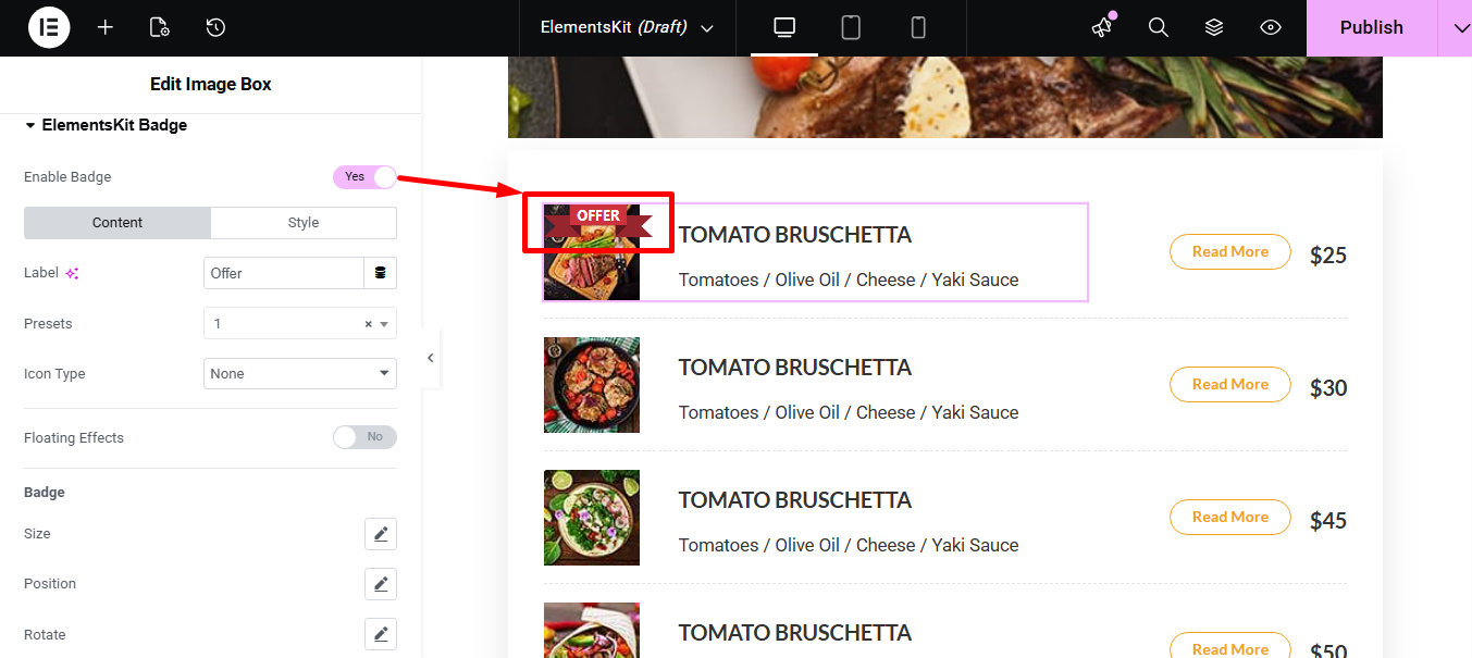 You have now learned all the features required to create, style, and perfectly position dynamic badges on your website using ElementsKit.