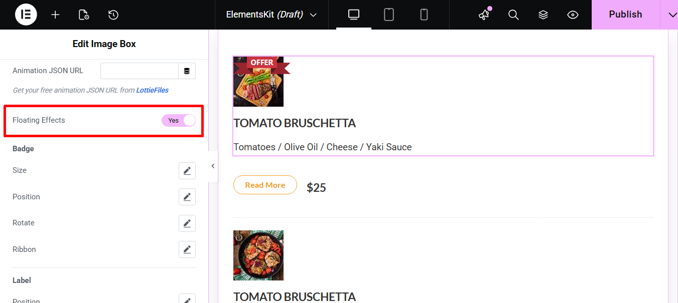 If you enable the floating effects button, it’ll add a subtle, continuous motion or animation to the badge to draw attention to it.