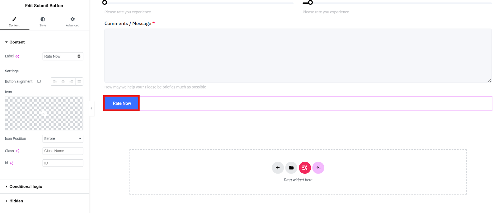 For instance, in the image below, you wish to add an icon to the Rate Now knapp.